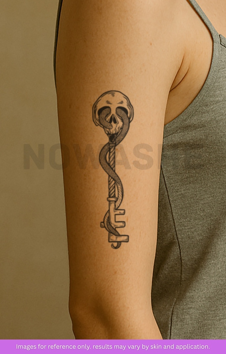 nowashe tattoos is designed for all skin tones, but the fully developed color is uniquely influenced by individual skin chemistry. The result can range from a blue/green, to a distinctive dark blue/black.