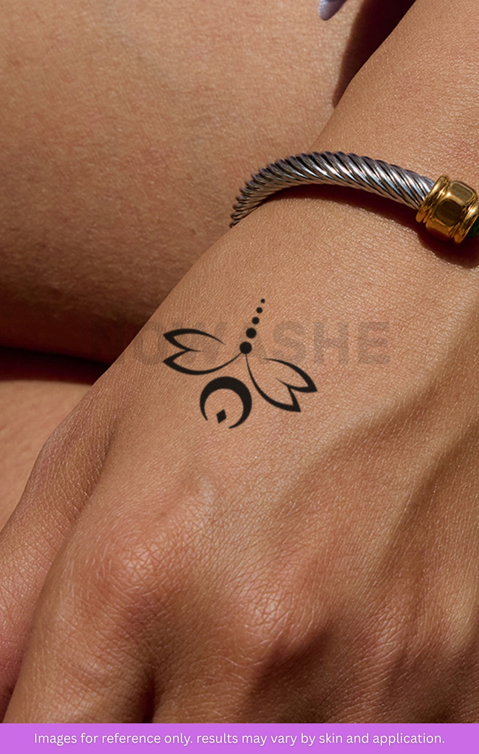 nowashe tattoos is designed for all skin tones, but the fully developed color is uniquely influenced by individual skin chemistry. The result can range from a blue/green, to a distinctive dark blue/black.