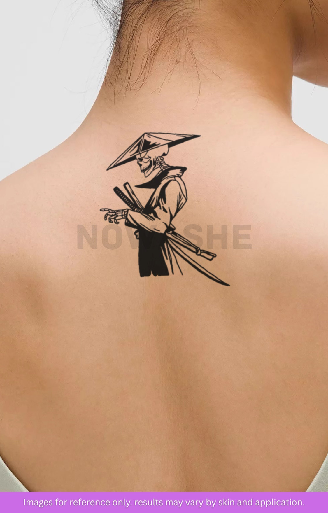 nowashe tattoos is designed for all skin tones, but the fully developed color is uniquely influenced by individual skin chemistry. The result can range from a blue/green, to a distinctive dark blue/black.