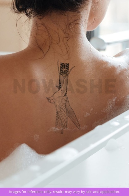 nowashe tattoos is designed for all skin tones, but the fully developed color is uniquely influenced by individual skin chemistry. The result can range from a blue/green, to a distinctive dark blue/black.