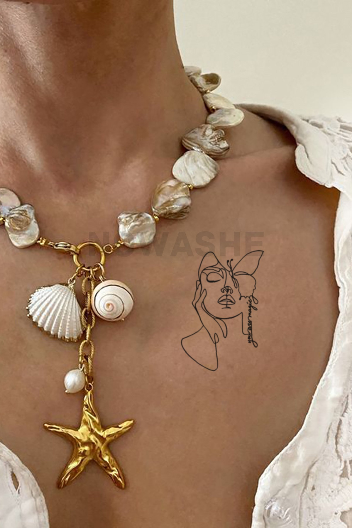 nowashe tattoos is designed for all skin tones, but the fully developed color is uniquely influenced by individual skin chemistry. The result can range from a blue/green, to a distinctive dark blue/black.