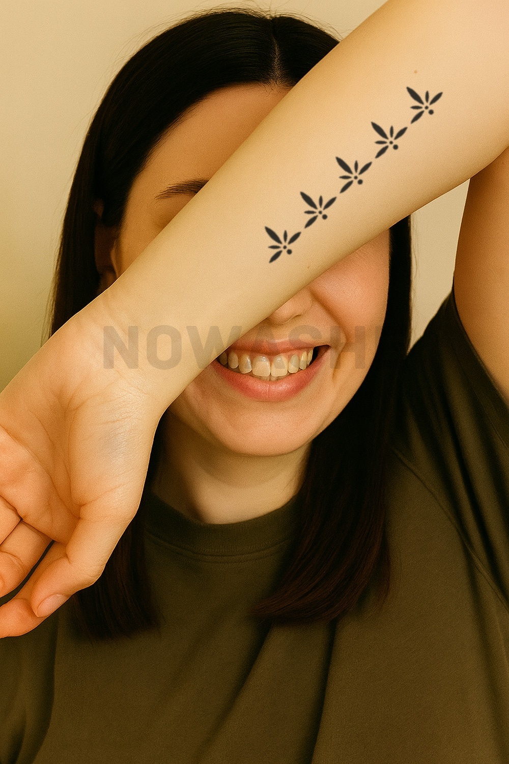 nowashe tattoos is designed for all skin tones, but the fully developed color is uniquely influenced by individual skin chemistry. The result can range from a blue/green, to a distinctive dark blue/black.