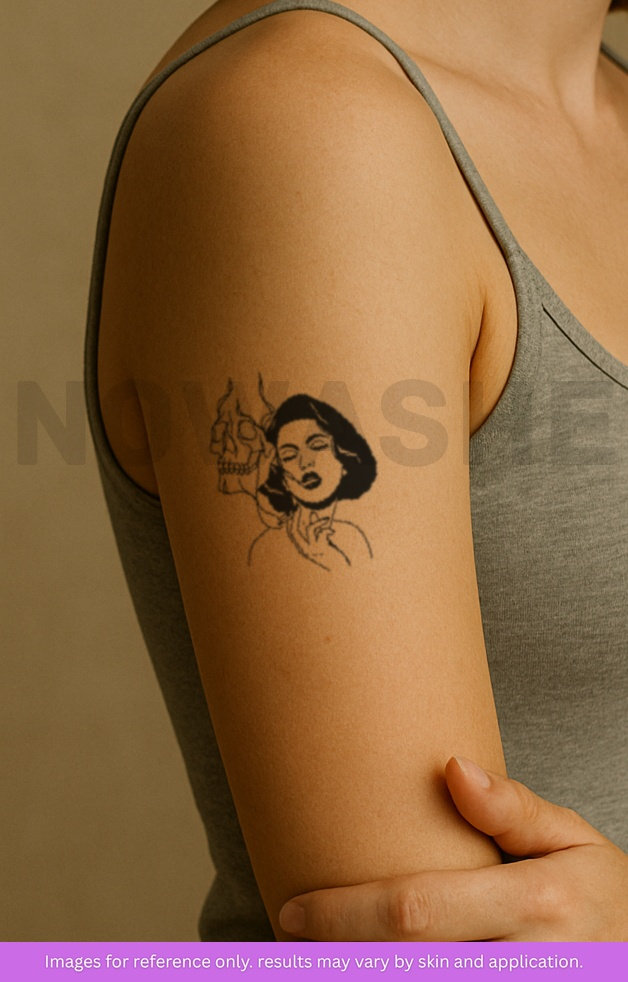nowashe tattoos is designed for all skin tones, but the fully developed color is uniquely influenced by individual skin chemistry. The result can range from a blue/green, to a distinctive dark blue/black.