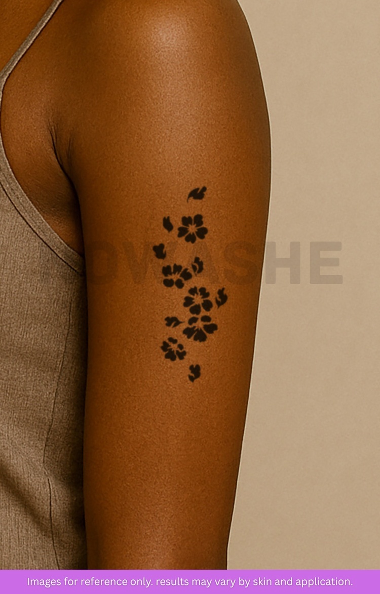 nowashe tattoos is designed for all skin tones, but the fully developed color is uniquely influenced by individual skin chemistry. The result can range from a blue/green, to a distinctive dark blue/black.
