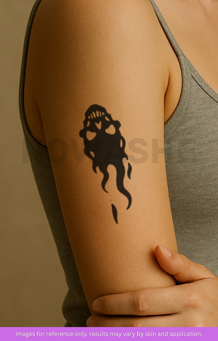 nowashe tattoos is designed for all skin tones, but the fully developed color is uniquely influenced by individual skin chemistry. The result can range from a blue/green, to a distinctive dark blue/black.