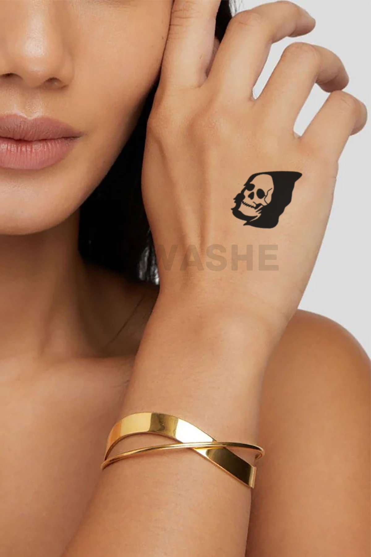 nowashe tattoos is designed for all skin tones, but the fully developed color is uniquely influenced by individual skin chemistry. The result can range from a blue/green, to a distinctive dark blue/black.