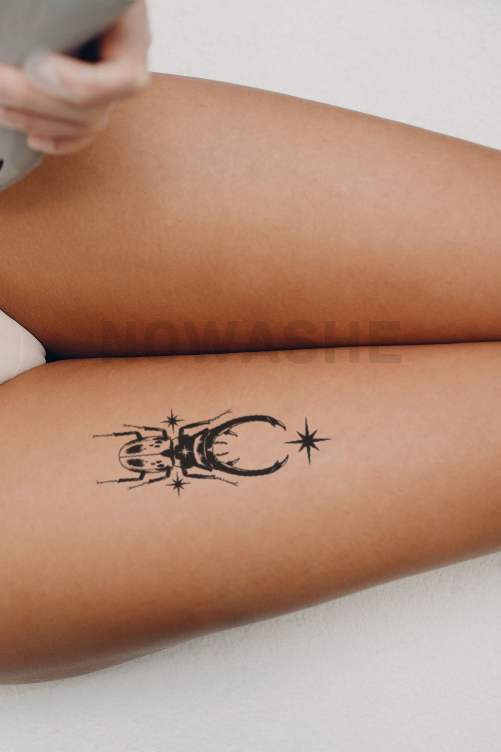 nowashe tattoos is designed for all skin tones, but the fully developed color is uniquely influenced by individual skin chemistry. The result can range from a blue/green, to a distinctive dark blue/black.