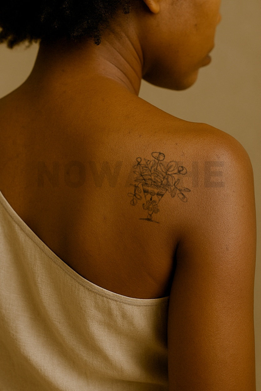 nowashe tattoos is designed for all skin tones, but the fully developed color is uniquely influenced by individual skin chemistry. The result can range from a blue/green, to a distinctive dark blue/black.