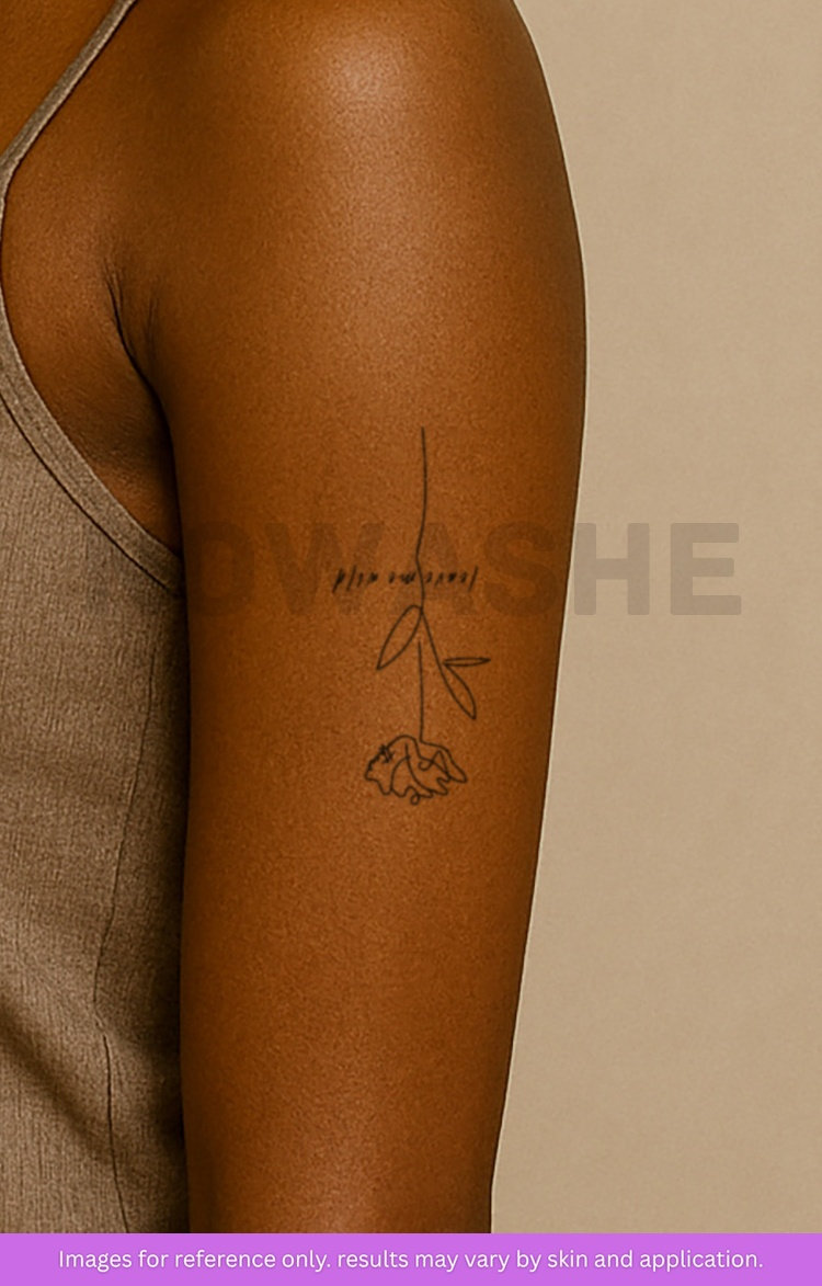 nowashe tattoos is designed for all skin tones, but the fully developed color is uniquely influenced by individual skin chemistry. The result can range from a blue/green, to a distinctive dark blue/black.