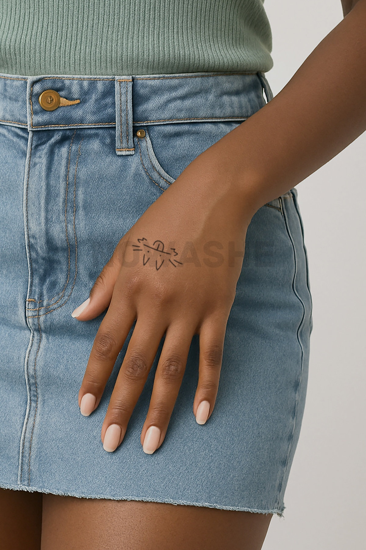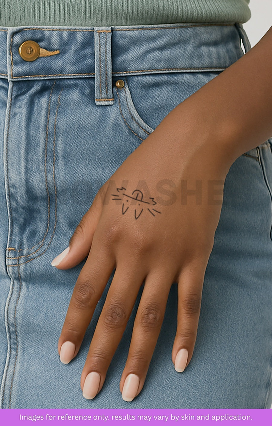 nowashe tattoos is designed for all skin tones, but the fully developed color is uniquely influenced by individual skin chemistry. The result can range from a blue/green, to a distinctive dark blue/black.