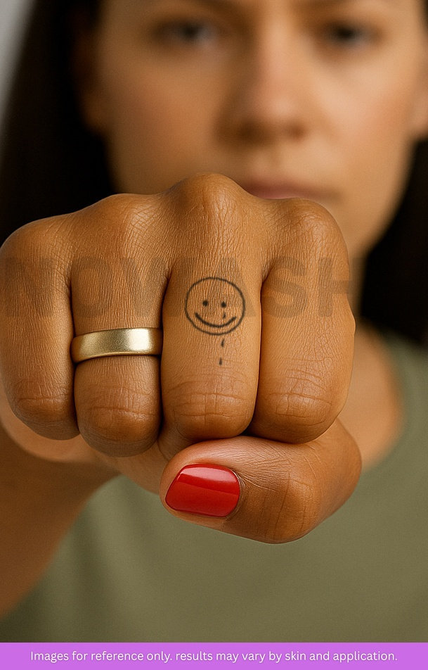 nowashe tattoos is designed for all skin tones, but the fully developed color is uniquely influenced by individual skin chemistry. The result can range from a blue/green, to a distinctive dark blue/black.
