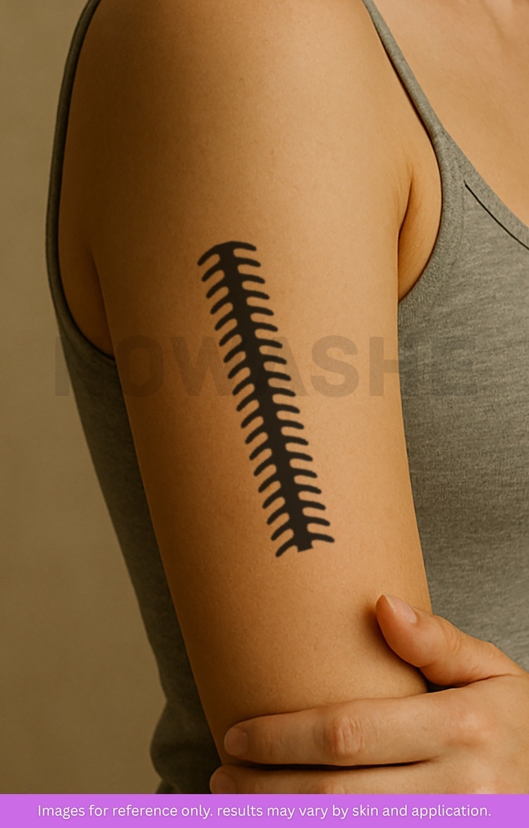 nowashe tattoos is designed for all skin tones, but the fully developed color is uniquely influenced by individual skin chemistry. The result can range from a blue/green, to a distinctive dark blue/black.
