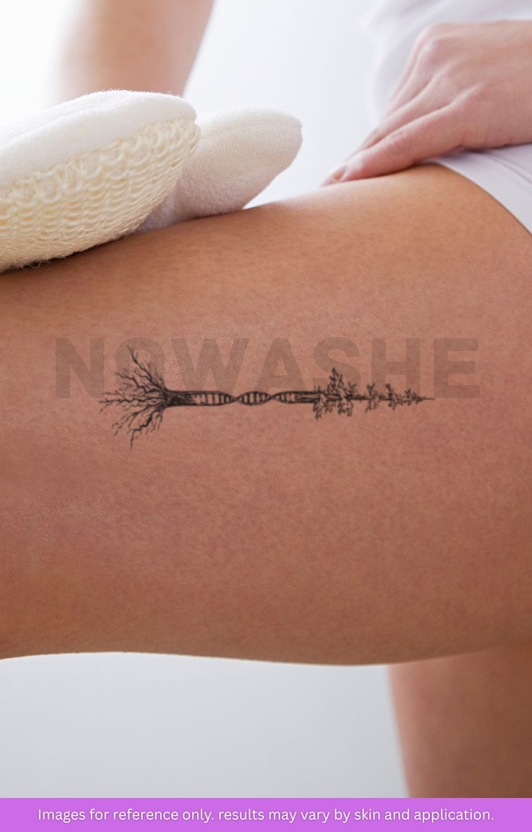 nowashe tattoos is designed for all skin tones, but the fully developed color is uniquely influenced by individual skin chemistry. The result can range from a blue/green, to a distinctive dark blue/black.