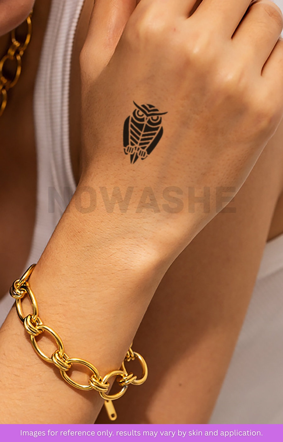 nowashe tattoos is designed for all skin tones, but the fully developed color is uniquely influenced by individual skin chemistry. The result can range from a blue/green, to a distinctive dark blue/black.