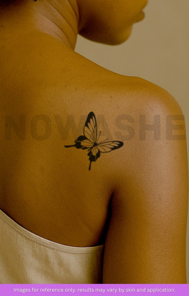 nowashe tattoos is designed for all skin tones, but the fully developed color is uniquely influenced by individual skin chemistry. The result can range from a blue/green, to a distinctive dark blue/black.