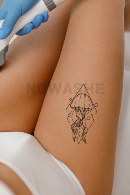 nowashe tattoos is designed for all skin tones, but the fully developed color is uniquely influenced by individual skin chemistry. The result can range from a blue/green, to a distinctive dark blue/black.