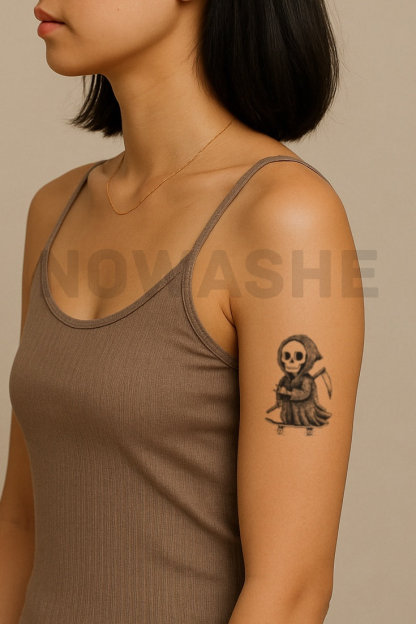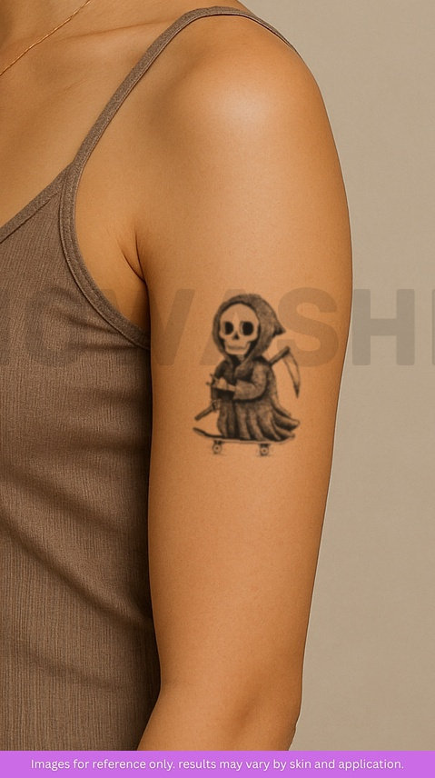 nowashe tattoos is designed for all skin tones, but the fully developed color is uniquely influenced by individual skin chemistry. The result can range from a blue/green, to a distinctive dark blue/black.