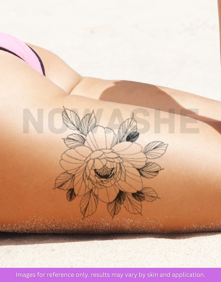 nowashe tattoos is designed for all skin tones, but the fully developed color is uniquely influenced by individual skin chemistry. The result can range from a blue/green, to a distinctive dark blue/black.