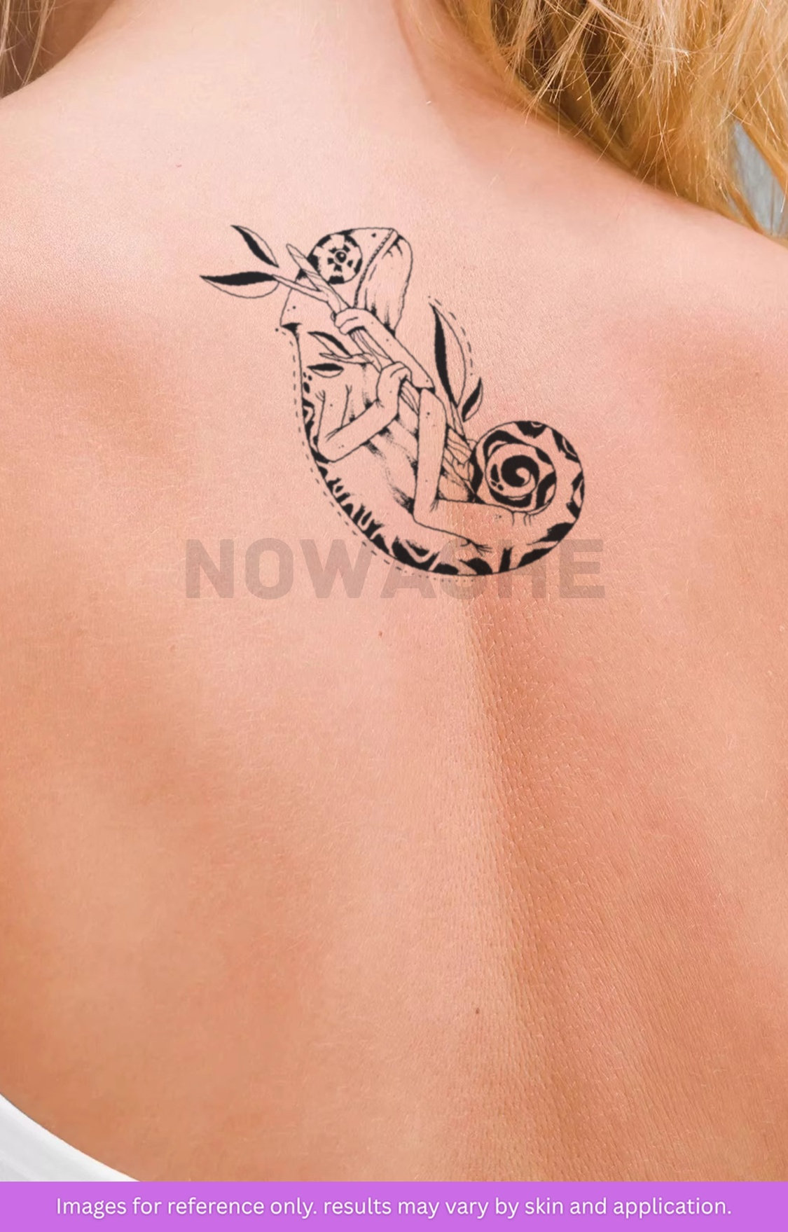 nowashe tattoos is designed for all skin tones, but the fully developed color is uniquely influenced by individual skin chemistry. The result can range from a blue/green, to a distinctive dark blue/black.