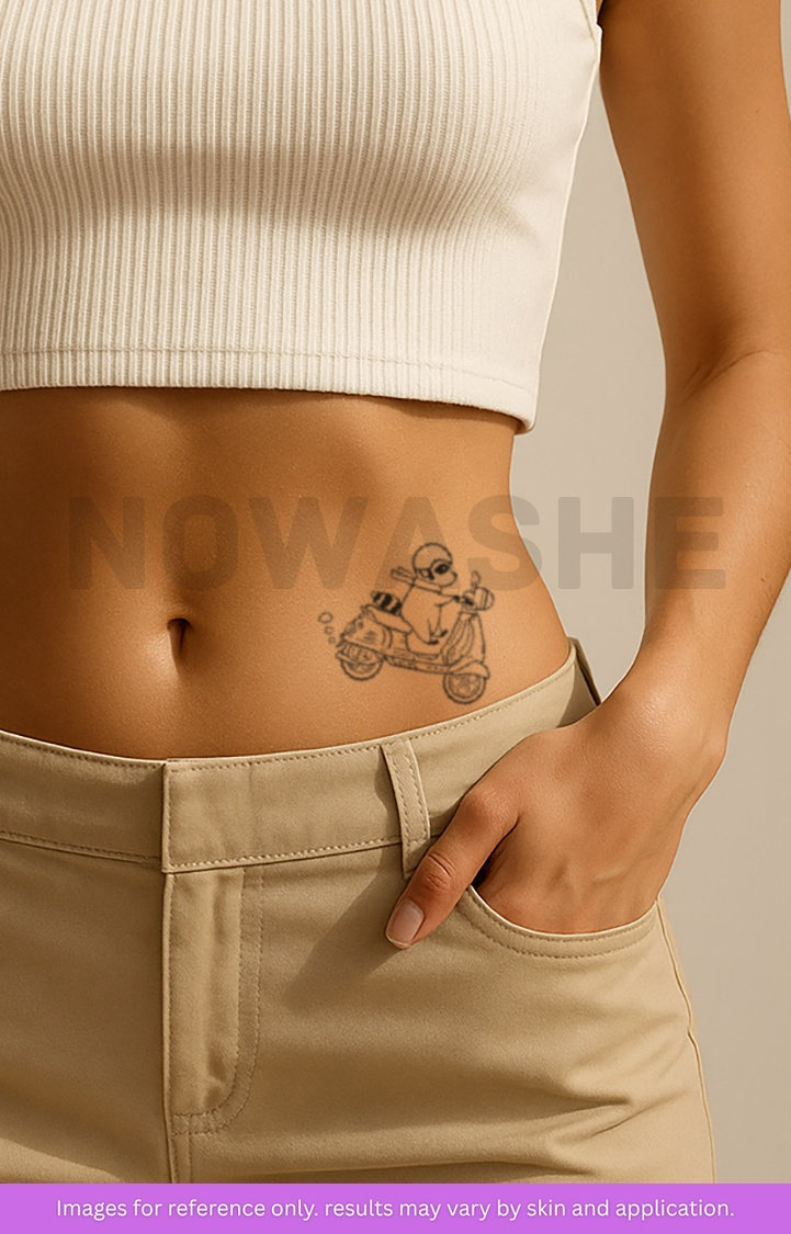 nowashe tattoos is designed for all skin tones, but the fully developed color is uniquely influenced by individual skin chemistry. The result can range from a blue/green, to a distinctive dark blue/black.