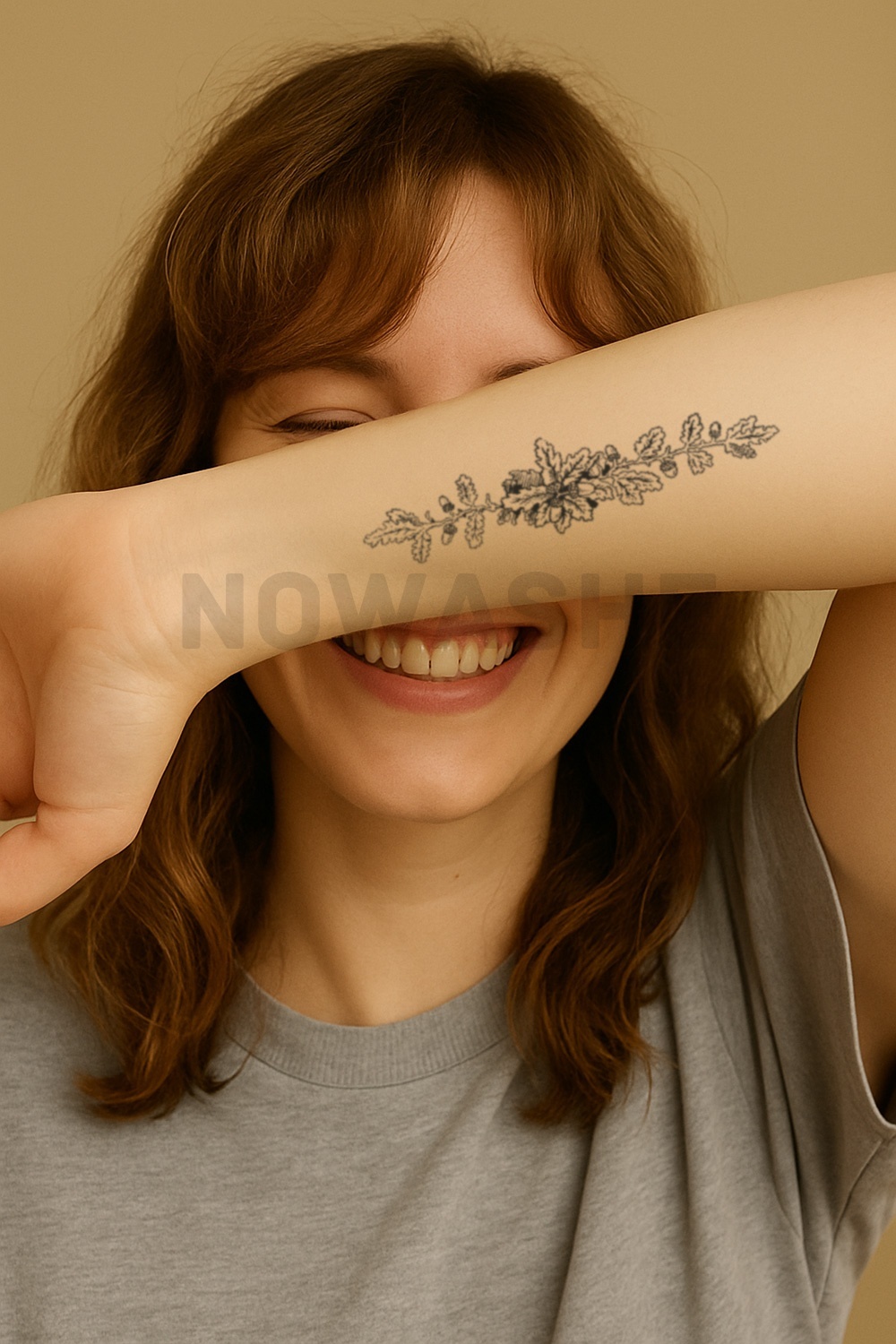 nowashe tattoos is designed for all skin tones, but the fully developed color is uniquely influenced by individual skin chemistry. The result can range from a blue/green, to a distinctive dark blue/black.