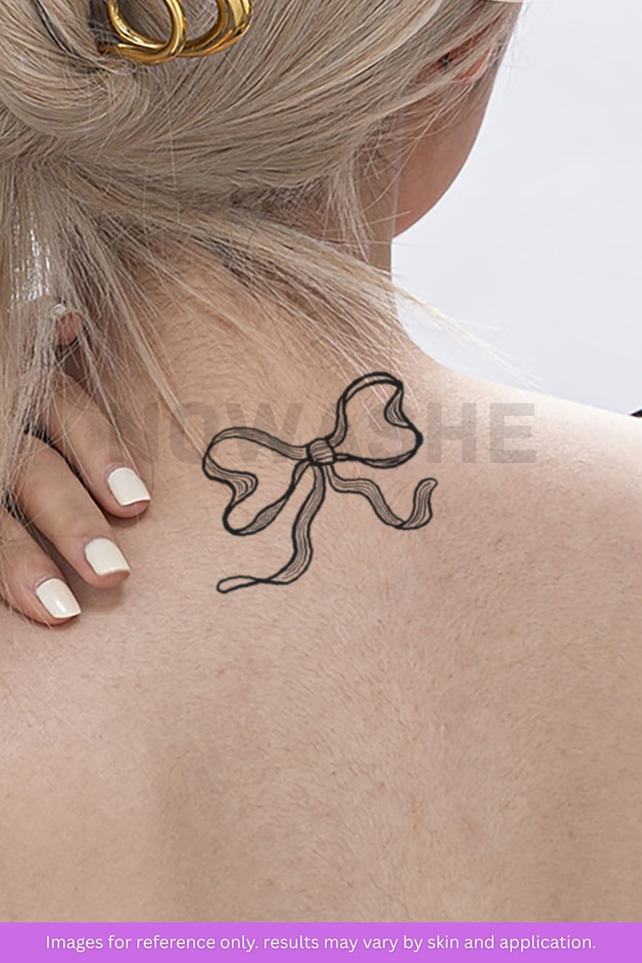 nowashe tattoos is designed for all skin tones, but the fully developed color is uniquely influenced by individual skin chemistry. The result can range from a blue/green, to a distinctive dark blue/black.