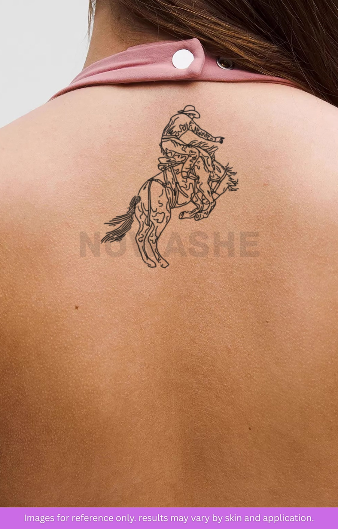 nowashe tattoos is designed for all skin tones, but the fully developed color is uniquely influenced by individual skin chemistry. The result can range from a blue/green, to a distinctive dark blue/black.