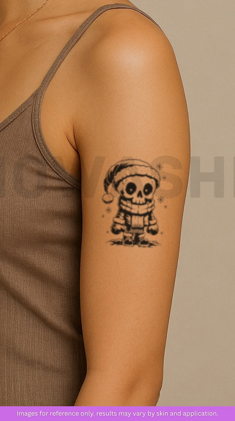 nowashe tattoos is designed for all skin tones, but the fully developed color is uniquely influenced by individual skin chemistry. The result can range from a blue/green, to a distinctive dark blue/black.