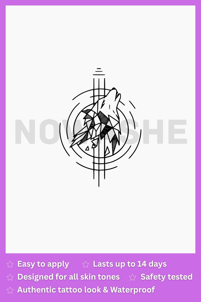 Fractured Howl by nowashe Tattoos is a stunning animal-inspired design. Featuring intricate linework and an illustrative wolf, this abstract and ornamental pattern is perfect for adding a touch of edge to any look. Water-Resistant for long-lasting wear.