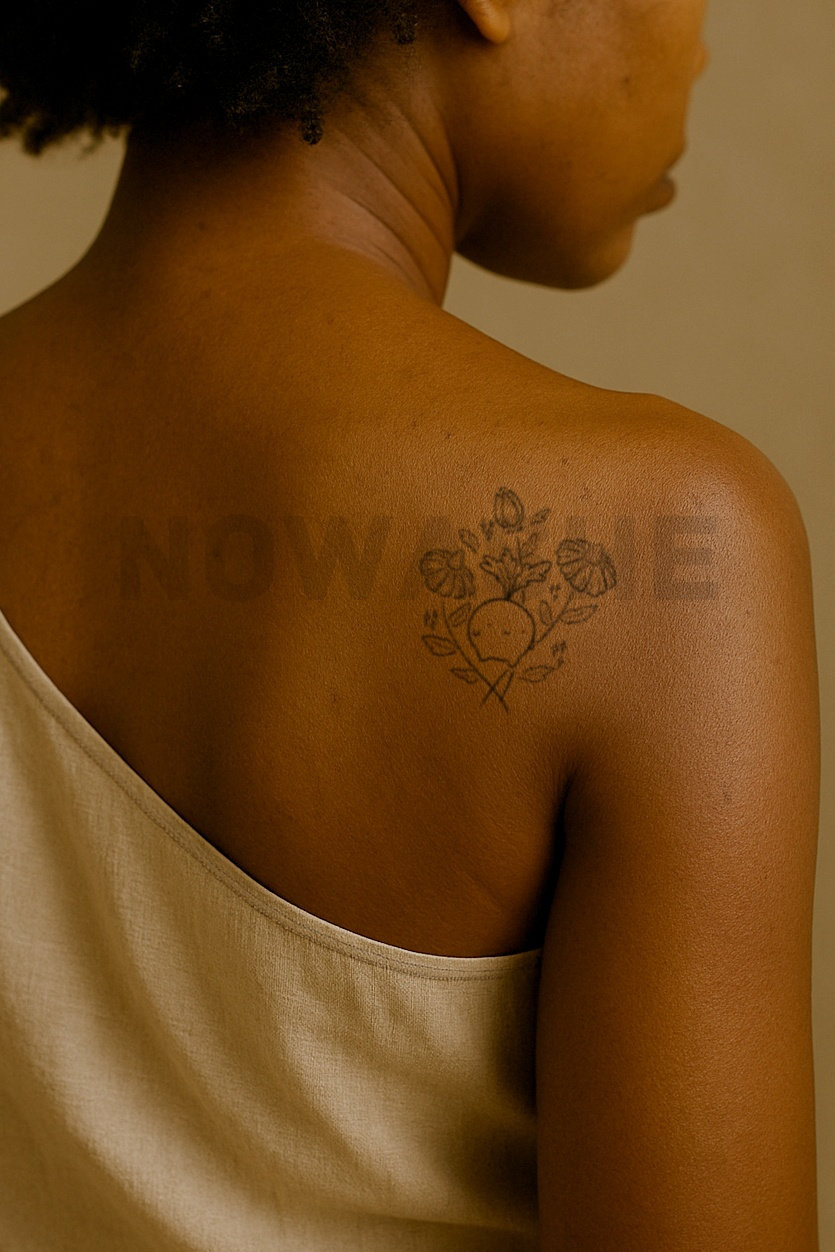nowashe tattoos is designed for all skin tones, but the fully developed color is uniquely influenced by individual skin chemistry. The result can range from a blue/green, to a distinctive dark blue/black.