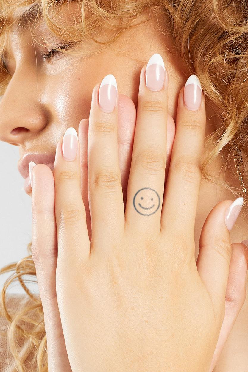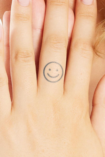 Have you ever heard that smiling is contagious? Well, it seriously isit's science! And the simple act of cracking a smile can also increase your overall feeling of happiness. So spread some cheer (to others and to yourself) while wearing this sweet lil' smiley face tattoo.