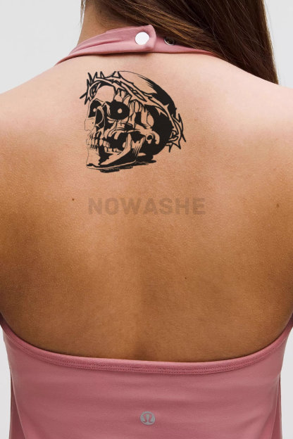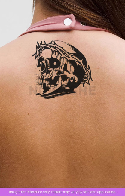 nowashe tattoos is designed for all skin tones, but the fully developed color is uniquely influenced by individual skin chemistry. The result can range from a blue/green, to a distinctive dark blue/black.