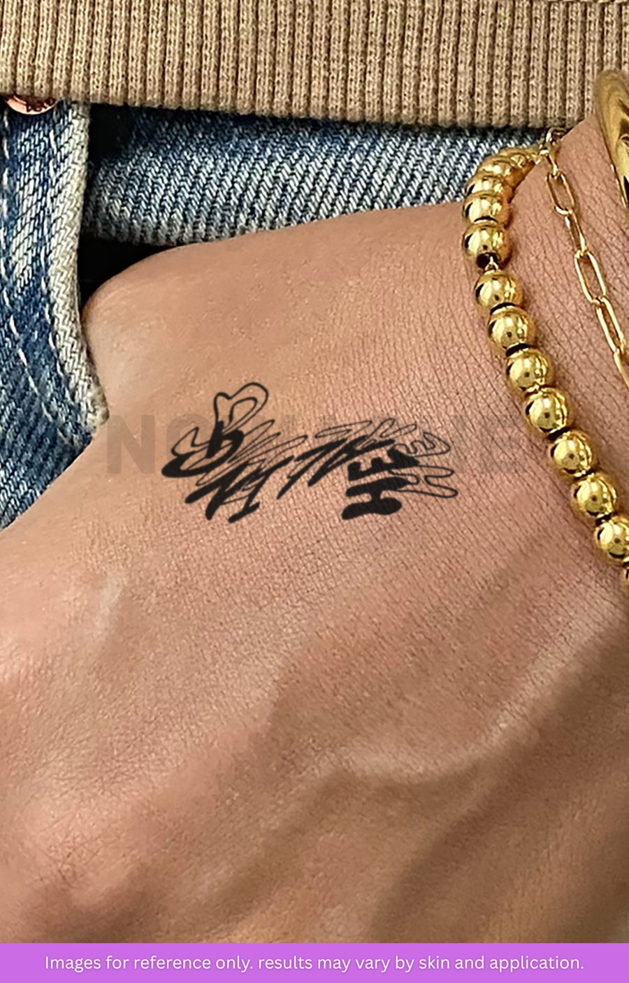 nowashe tattoos is designed for all skin tones, but the fully developed color is uniquely influenced by individual skin chemistry. The result can range from a blue/green, to a distinctive dark blue/black.