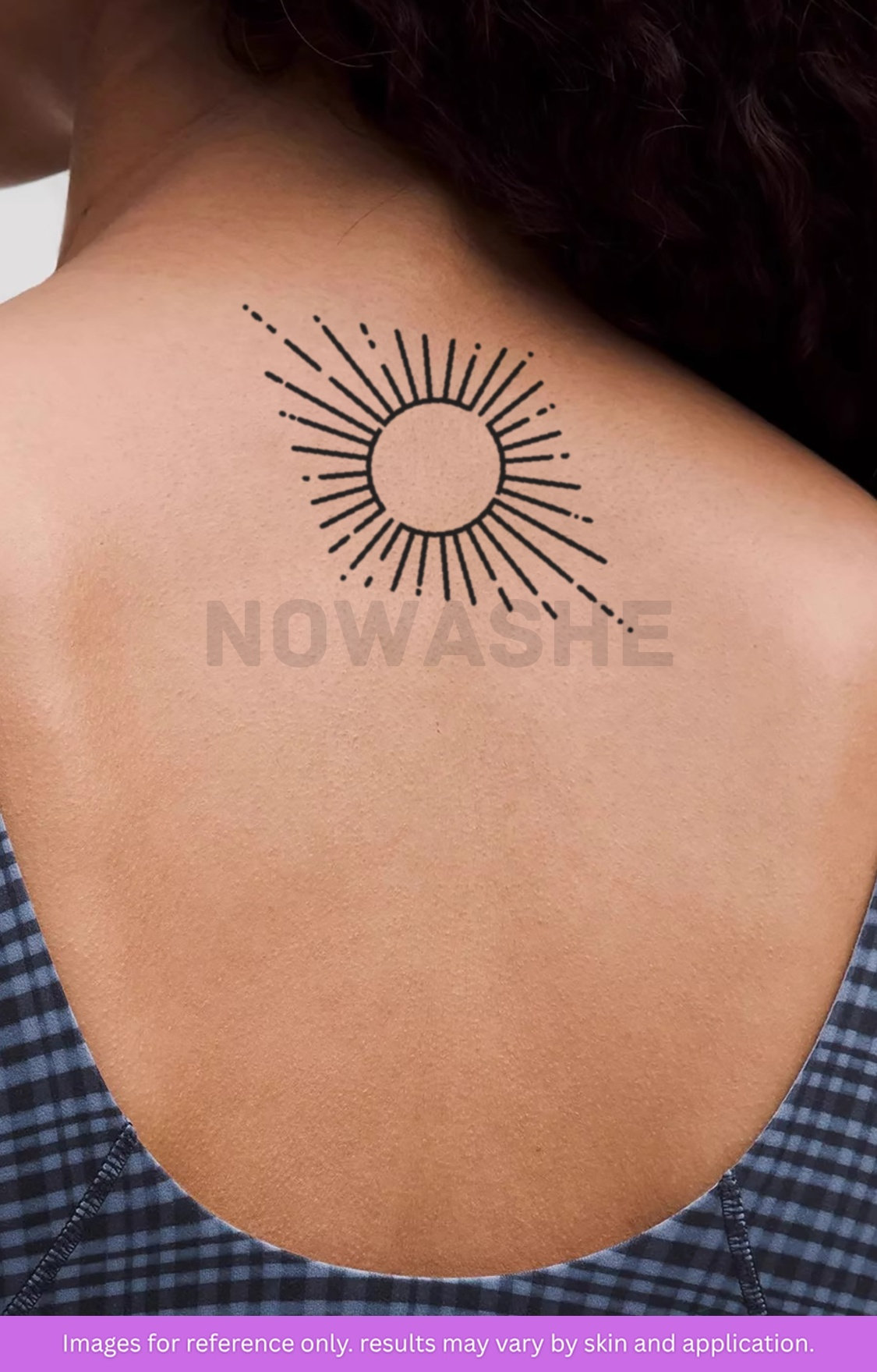 nowashe tattoos is designed for all skin tones, but the fully developed color is uniquely influenced by individual skin chemistry. The result can range from a blue/green, to a distinctive dark blue/black.