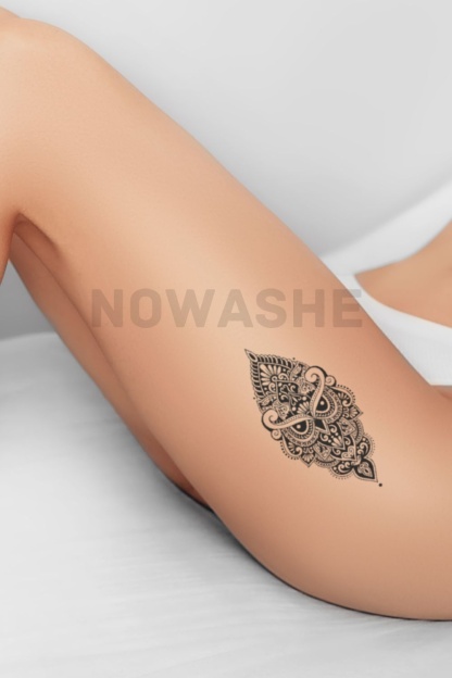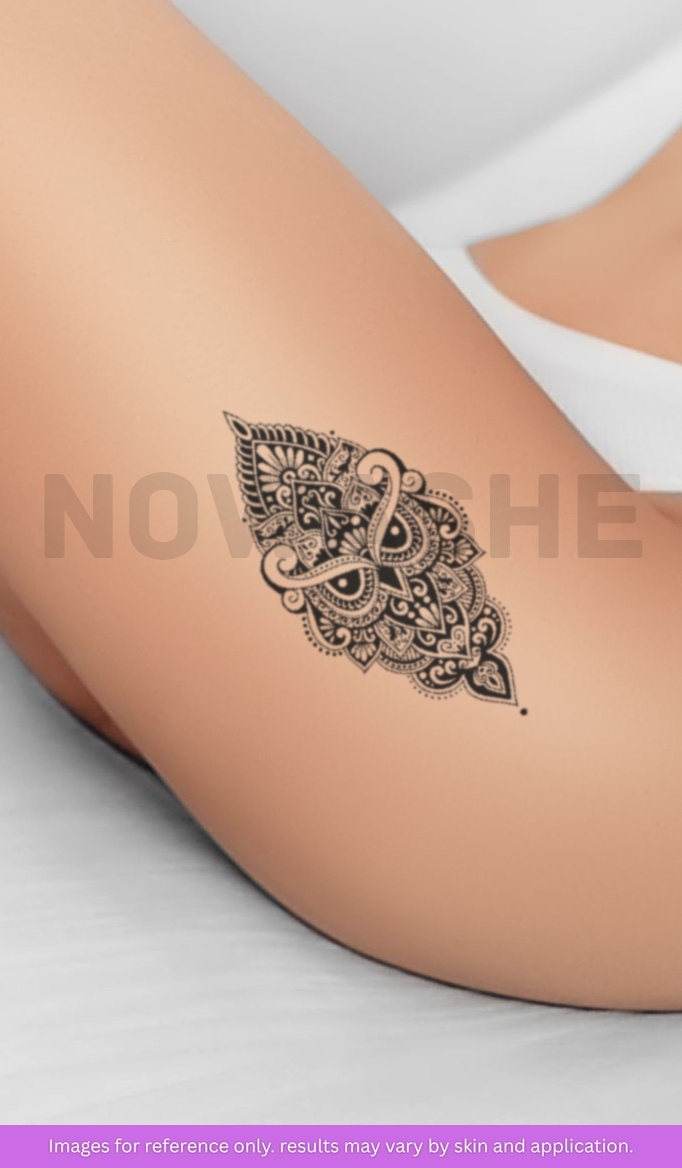 nowashe tattoos is designed for all skin tones, but the fully developed color is uniquely influenced by individual skin chemistry. The result can range from a blue/green, to a distinctive dark blue/black.