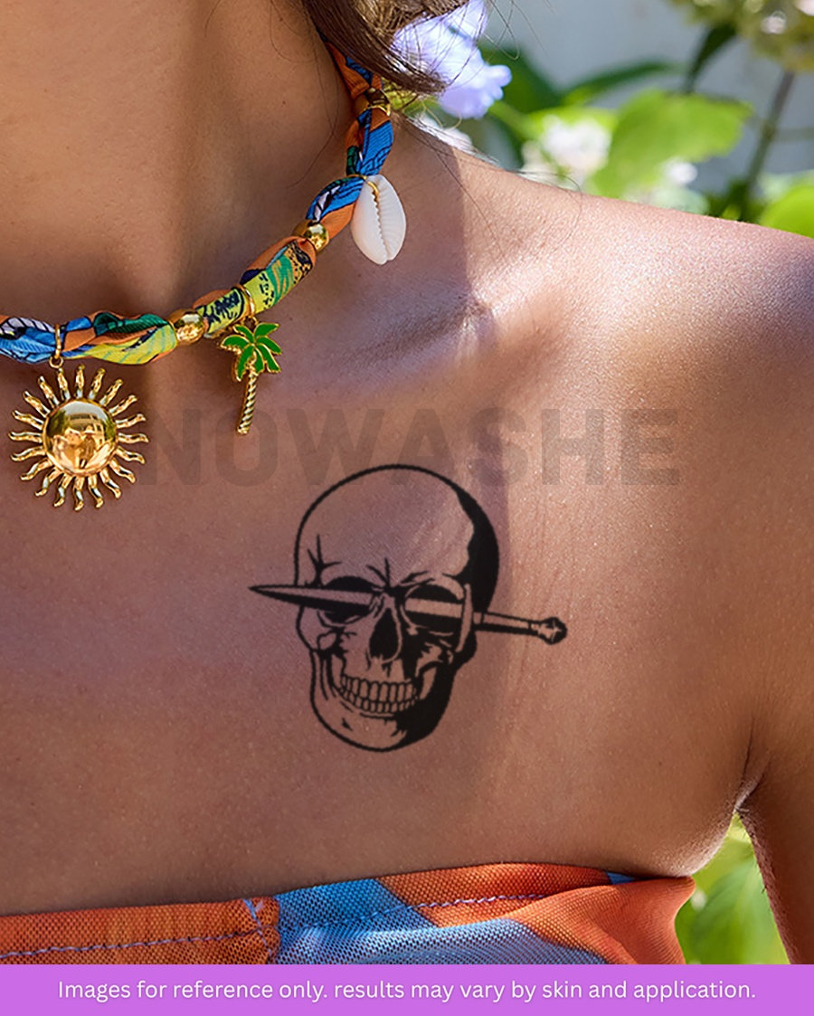 nowashe tattoos is designed for all skin tones, but the fully developed color is uniquely influenced by individual skin chemistry. The result can range from a blue/green, to a distinctive dark blue/black.