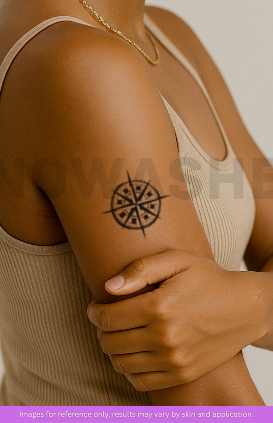 nowashe tattoos is designed for all skin tones, but the fully developed color is uniquely influenced by individual skin chemistry. The result can range from a blue/green, to a distinctive dark blue/black.