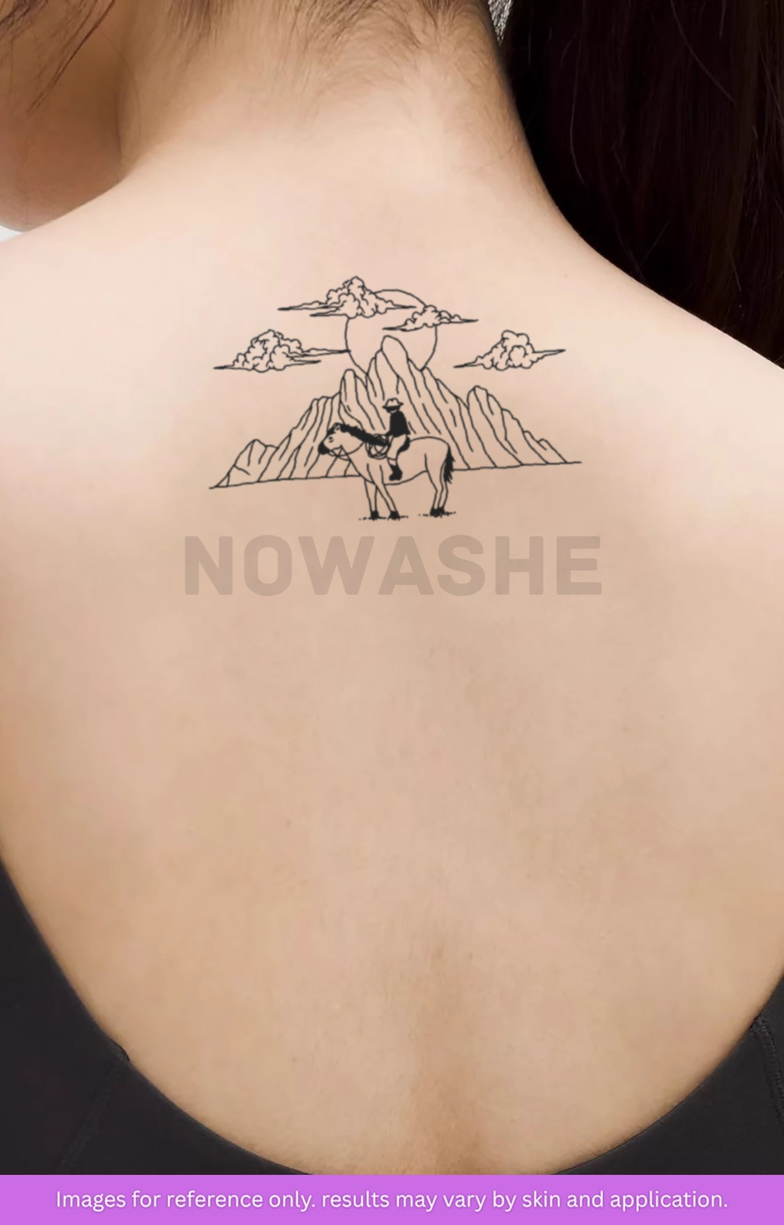 nowashe tattoos is designed for all skin tones, but the fully developed color is uniquely influenced by individual skin chemistry. The result can range from a blue/green, to a distinctive dark blue/black.