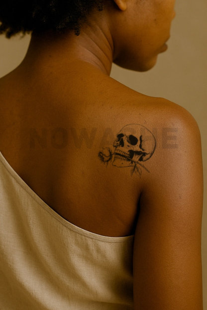 nowashe tattoos is designed for all skin tones, but the fully developed color is uniquely influenced by individual skin chemistry. The result can range from a blue/green, to a distinctive dark blue/black.