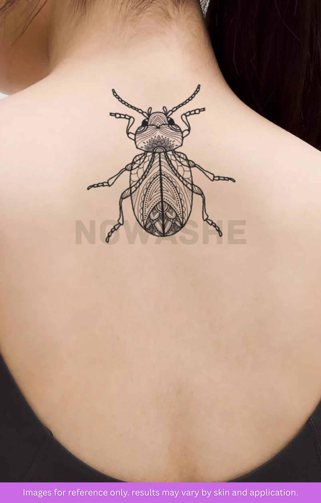 nowashe tattoos is designed for all skin tones, but the fully developed color is uniquely influenced by individual skin chemistry. The result can range from a blue/green, to a distinctive dark blue/black.