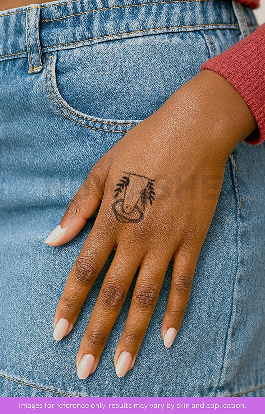 nowashe tattoos is designed for all skin tones, but the fully developed color is uniquely influenced by individual skin chemistry. The result can range from a blue/green, to a distinctive dark blue/black.