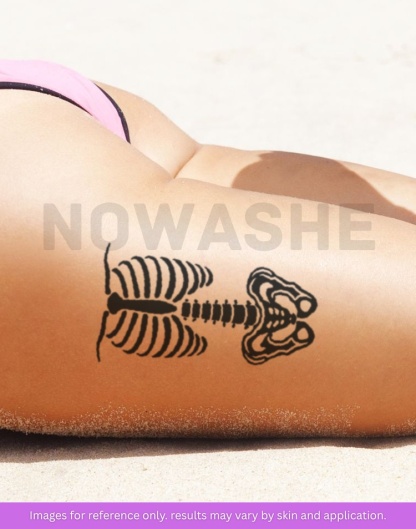 nowashe tattoos is designed for all skin tones, but the fully developed color is uniquely influenced by individual skin chemistry. The result can range from a blue/green, to a distinctive dark blue/black.