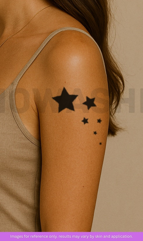 nowashe tattoos is designed for all skin tones, but the fully developed color is uniquely influenced by individual skin chemistry. The result can range from a blue/green, to a distinctive dark blue/black.