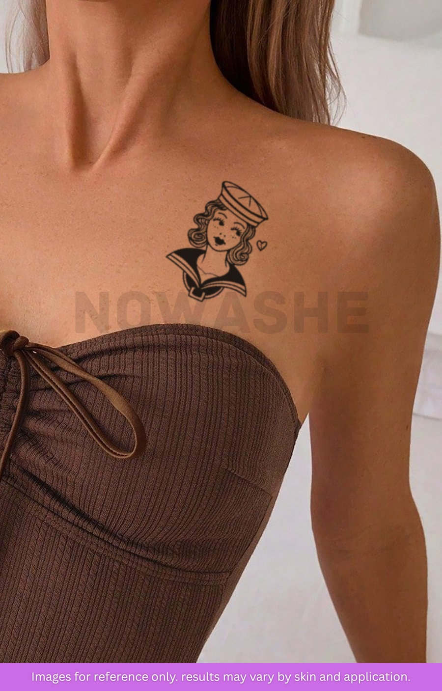 nowashe tattoos is designed for all skin tones, but the fully developed color is uniquely influenced by individual skin chemistry. The result can range from a blue/green, to a distinctive dark blue/black.
