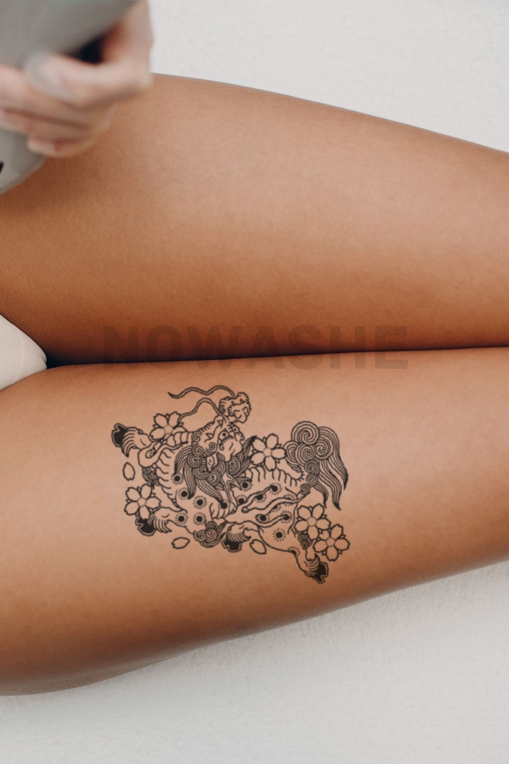 nowashe tattoos is designed for all skin tones, but the fully developed color is uniquely influenced by individual skin chemistry. The result can range from a blue/green, to a distinctive dark blue/black.