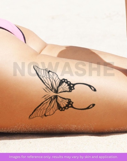 nowashe tattoos is designed for all skin tones, but the fully developed color is uniquely influenced by individual skin chemistry. The result can range from a blue/green, to a distinctive dark blue/black.