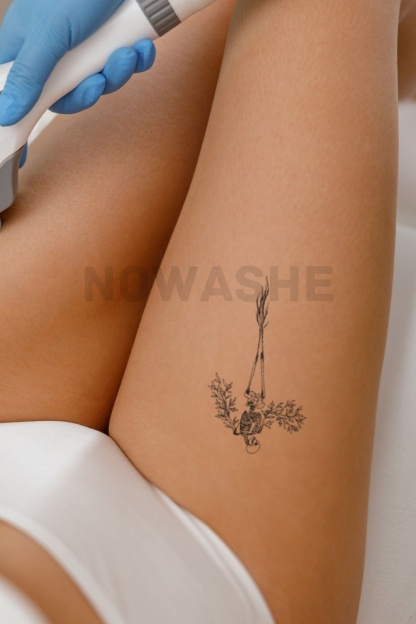 nowashe tattoos is designed for all skin tones, but the fully developed color is uniquely influenced by individual skin chemistry. The result can range from a blue/green, to a distinctive dark blue/black.