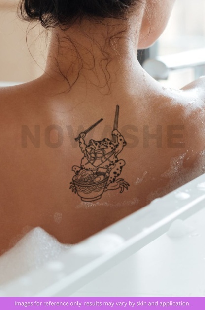 nowashe tattoos is designed for all skin tones, but the fully developed color is uniquely influenced by individual skin chemistry. The result can range from a blue/green, to a distinctive dark blue/black.