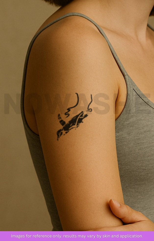 nowashe tattoos is designed for all skin tones, but the fully developed color is uniquely influenced by individual skin chemistry. The result can range from a blue/green, to a distinctive dark blue/black.