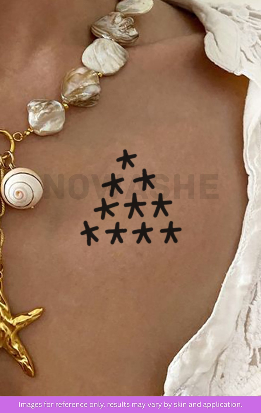 nowashe tattoos is designed for all skin tones, but the fully developed color is uniquely influenced by individual skin chemistry. The result can range from a blue/green, to a distinctive dark blue/black.